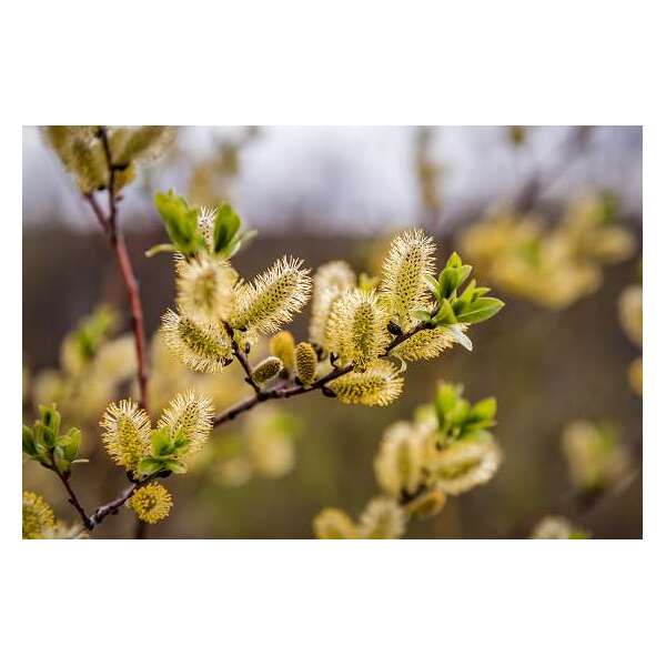 Im Frühling erscheinen Kazen an den Bäumen, der männliche ist an der runden, ovalen Form zu erkennen, die mit silbrigem Daunenpfen bedeckt ist, wo später die gelben Staubblätter erscheinen.