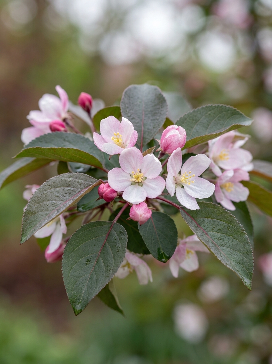 Malus domestica 'Appletini' ist ein selbstbestäubender Zwergpfelbaum mit einem reichen Ertrag kleiner essbarer Früchte.