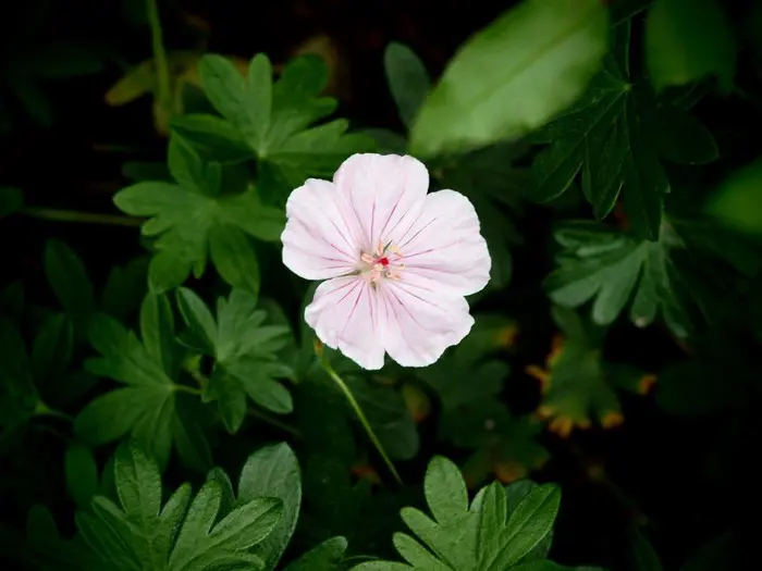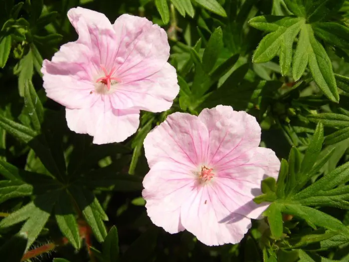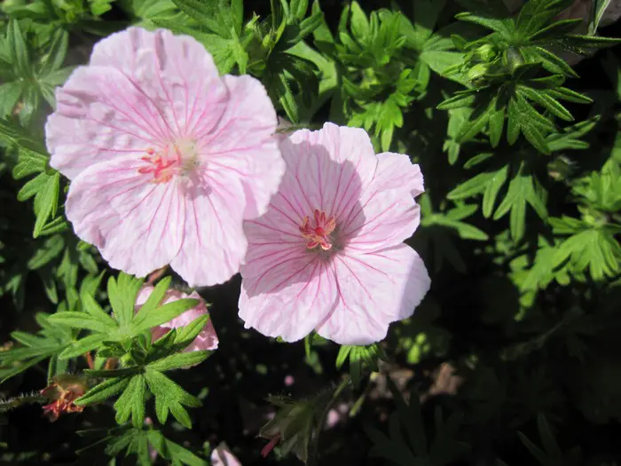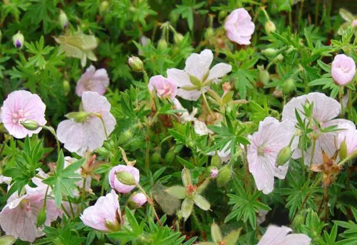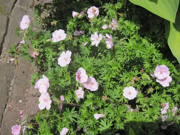 Geranium sanguineum 'Compactum' unterscheidet sich von der Art durch seine kompakte Gestalt und bildet eine Polsterschicht aus sehr fein geteilten apfelgrünen Blättern, die im Herbst orange-gelb/rot wird.