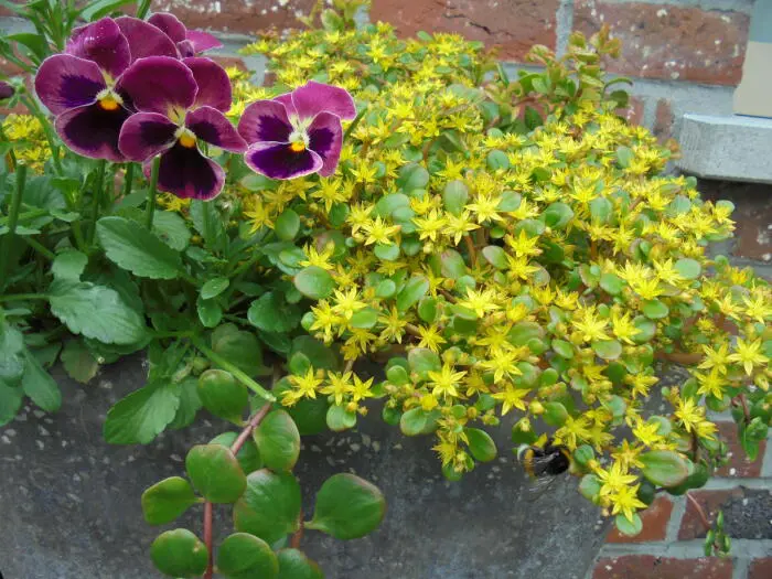 Schön für einen Trog, zwischen den Fliesen oder im Steingarten.