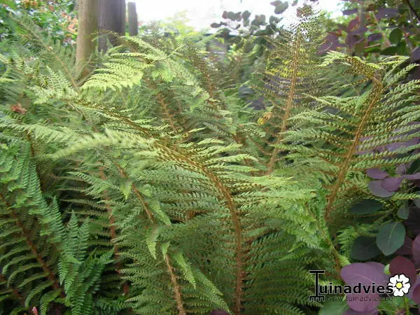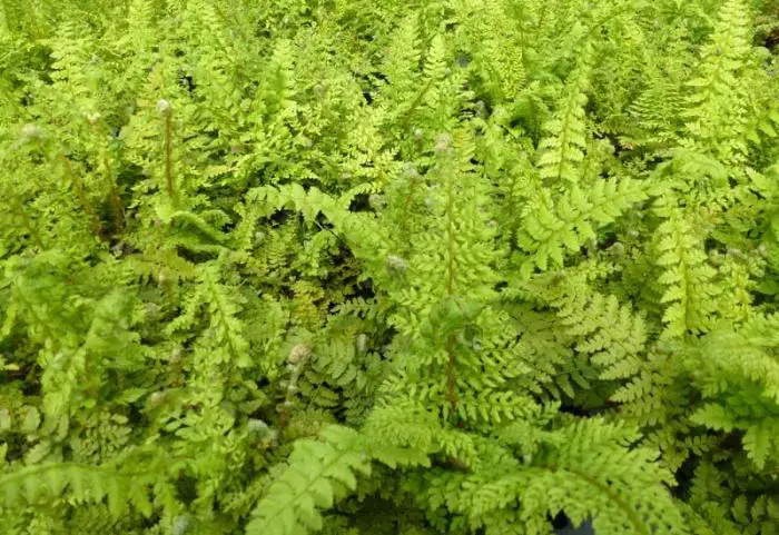 Polystichum setiferum 'Proliferum' ist ein Farn mit schmalen, langen und fein geteilten Blättern.