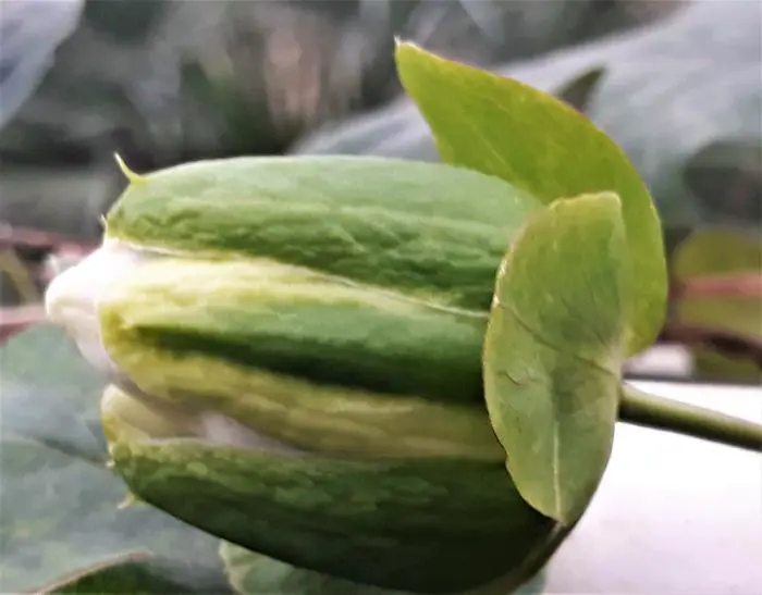 In sehr heißen Sommern produziert die Pflanze nach der Blüte lange, eiförmige orange-gelbe Früchte, die essbar, aber nahezu geschmacklos sind.