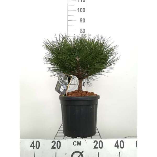 Der kugelförmige Pinus nigra 'Pierrick Brégeon' ist ein niedriger, kompakter Strauch mit grünen Nadeln.
