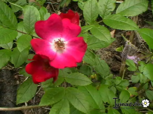 Dunkelrosa, lose gefüllte Blüten in Trauben mit einem sanften Duft und sehr krankheitsresistent.