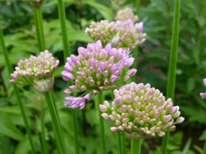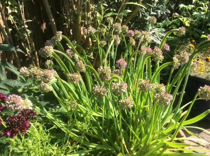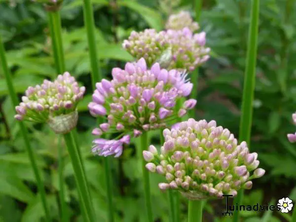 Allium senescens subsp. montanum ist eine niedrige Zierzwiebel mit einer lavendelblauen kugelförmigen Blüte und gesundem, glänzendem Laub, die bis zum Herbst attraktiv bleibt.
