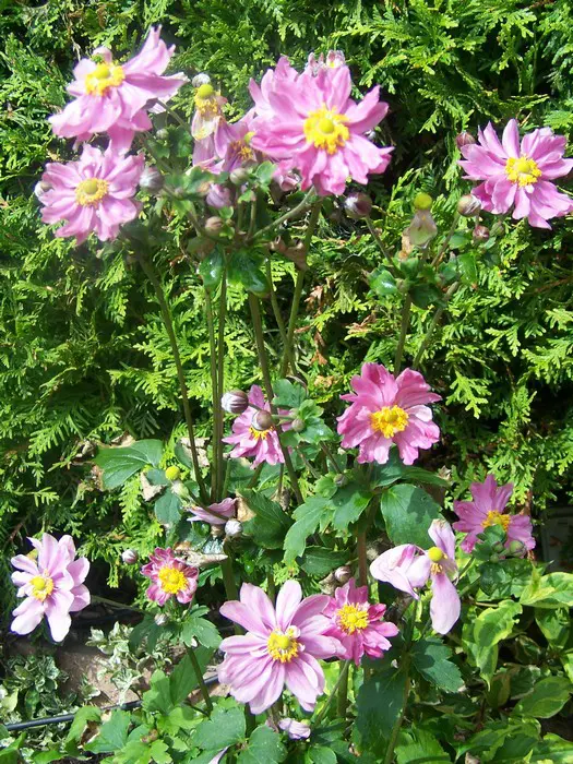 Sie eignen sich besser, um vorne am Rand zu stehen, da sie weniger groß werden (50 cm) als die meisten japanischen Anemonen. Da sie nicht so hoch wachsen, fallen sie im Regen auch seltener um.