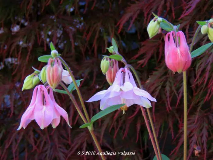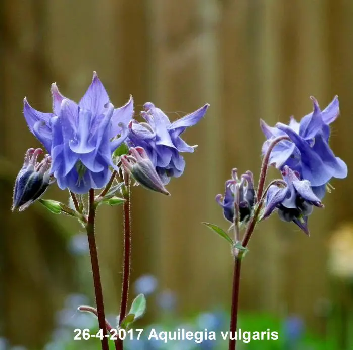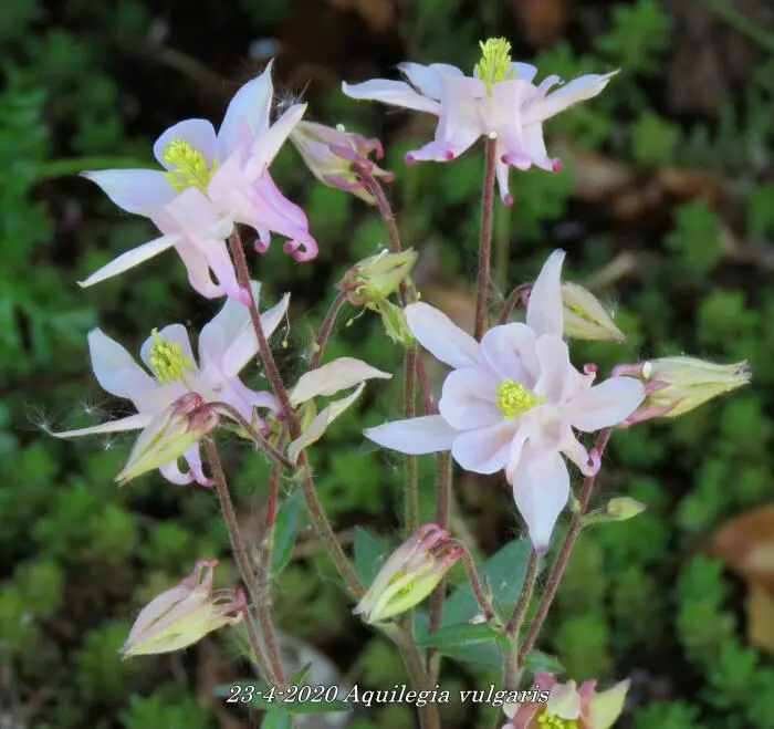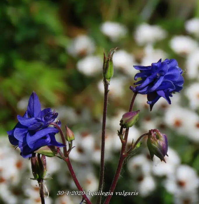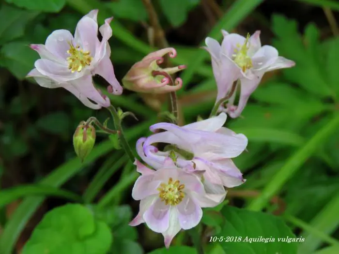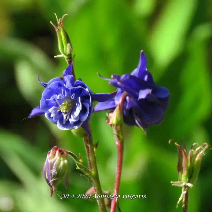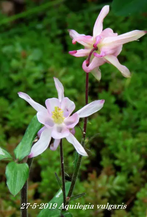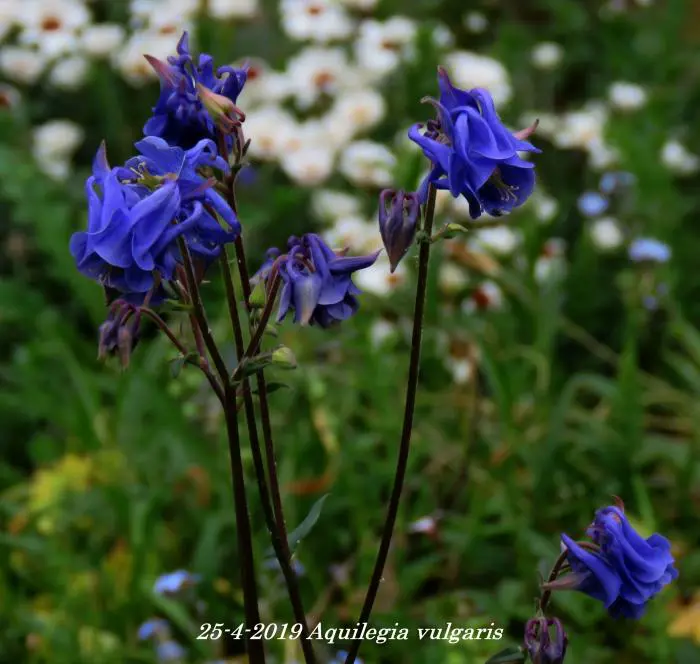 Aquilegia vulgaris blüht ursprünglich dunkelviolett, bei wilden Pflanzen manchmal auch rötlich-violett, rosa oder weiß.