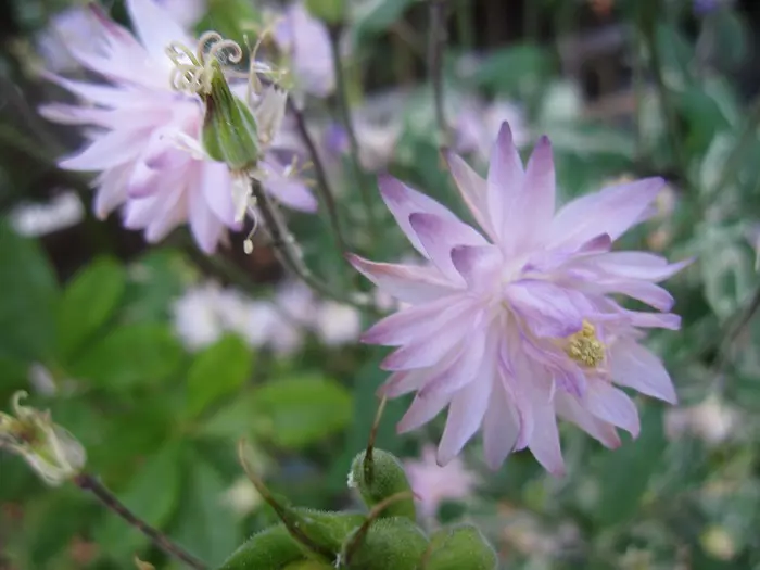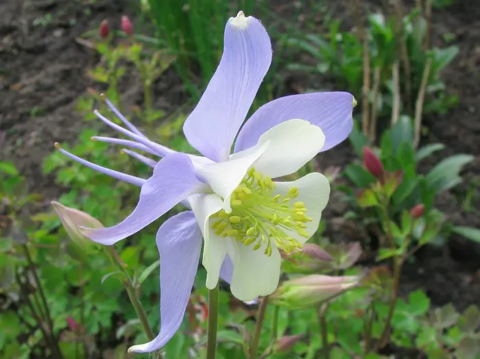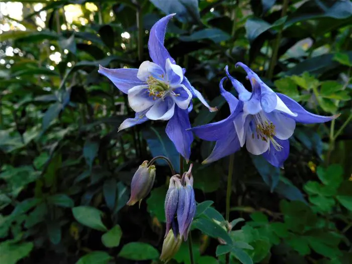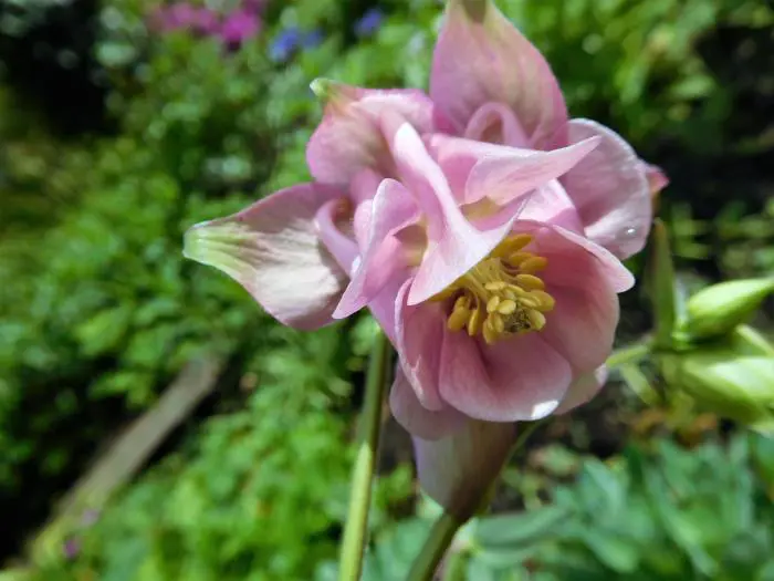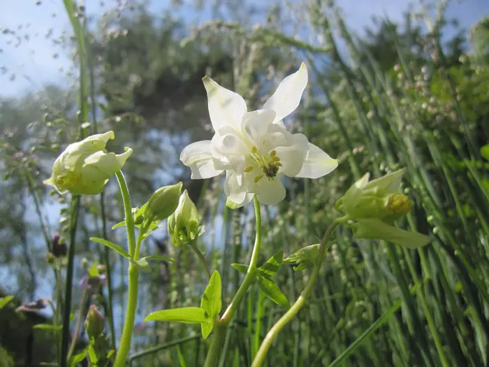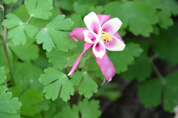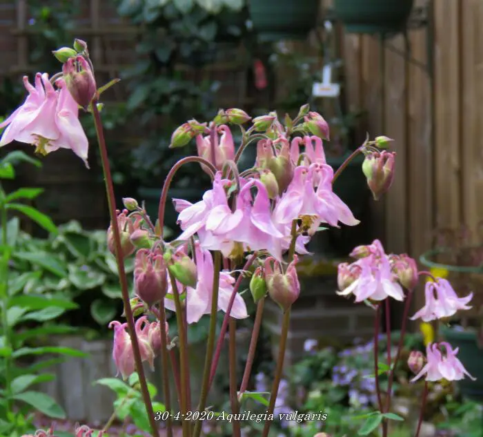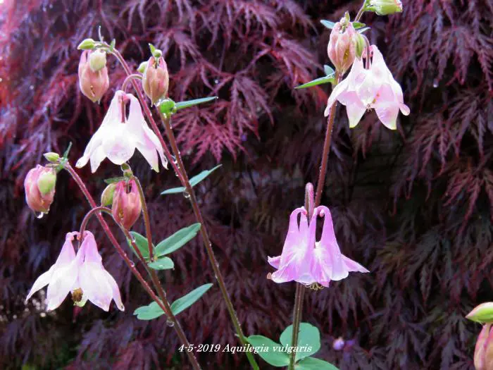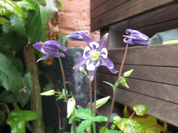 Aquilegia vulgaris blüht ursprünglich dunkelviolett, bei wilden Pflanzen manchmal auch rötlich-violett, rosa oder weiß.