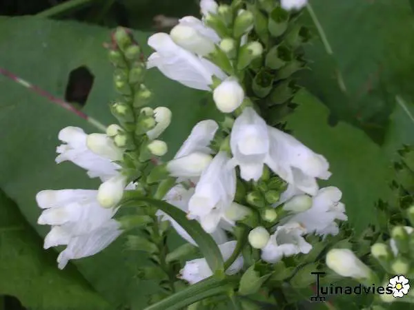 Die Blumen verdanken ihren Namen Schildkrötenblume, weil sie dem Kopf einer Schildkröte ähneln. Sie blühen weiß mit manchmal einem fliederfarbenen Farbton.