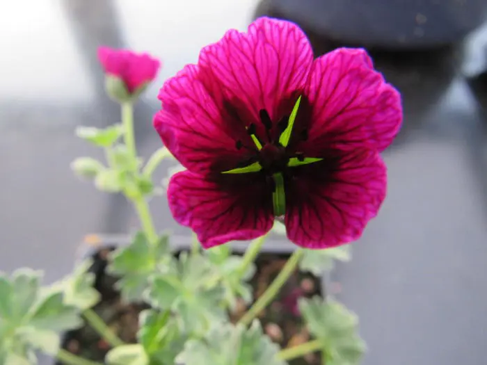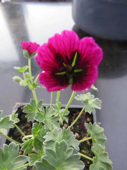 Geranium cinereum 'Jolly Jewel Red' ist eine Zwergenart mit sehr gespaltenen, weichen Blättern und einer langen Blüte aus aderigen magentaroten Blüten.