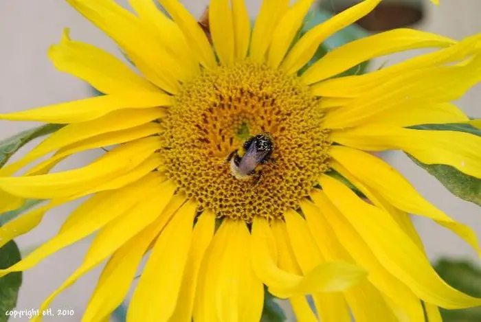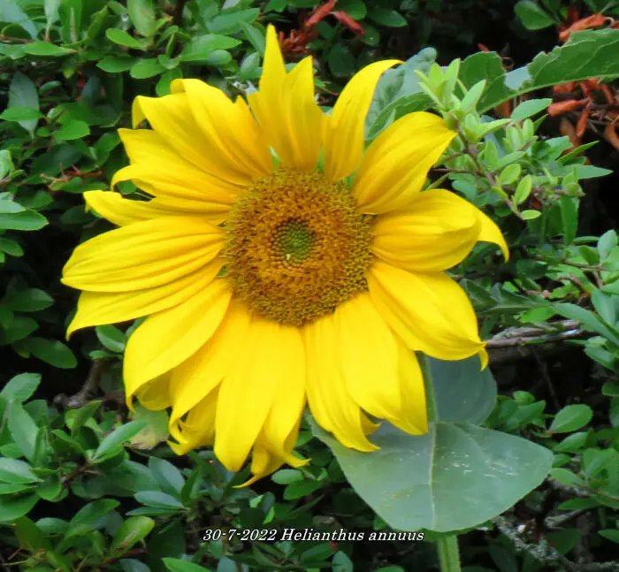 Helianthus annuus ist der wissenschaftliche Name für die Sonnenblume, der von den griechischen Wörtern 'helios' = Sonne und anthos = Blume abgeleitet ist.