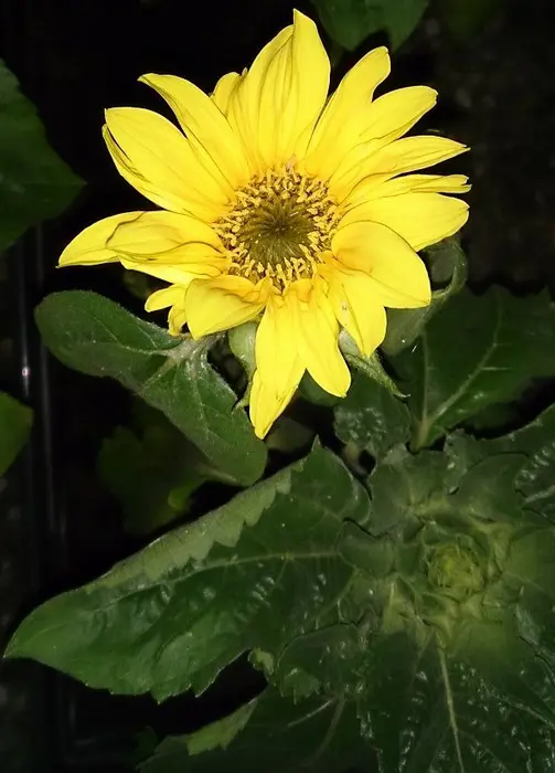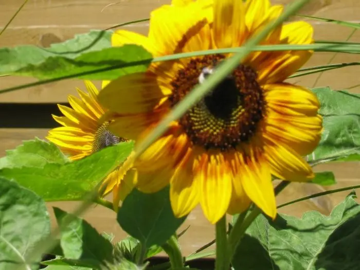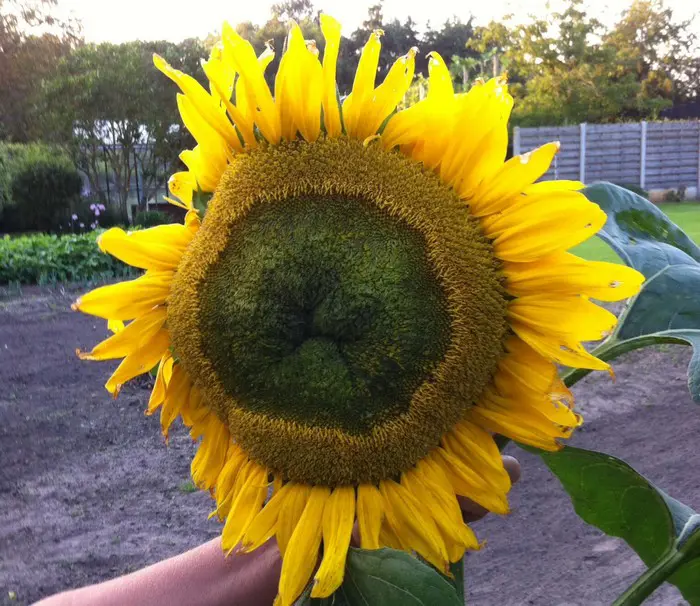 Die Blüten sind außerdem groß mit leuchtend gelben Blütenblättern um ein großes dunkelbraunes Herz.