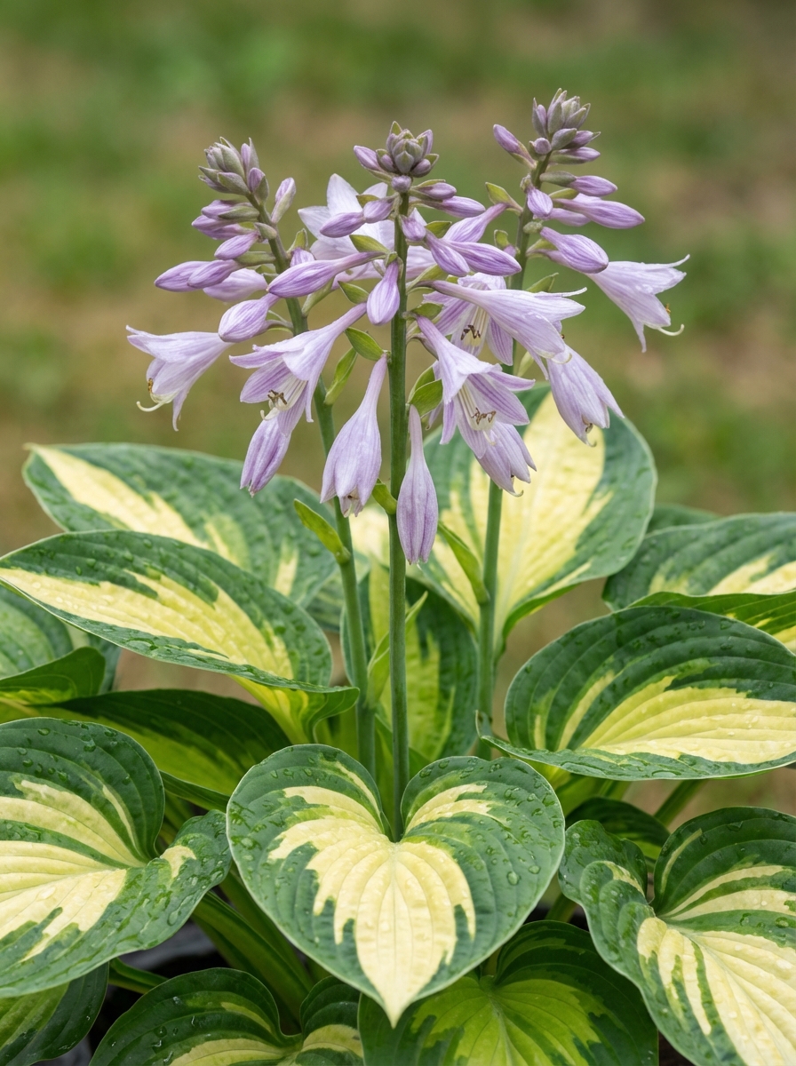 Die Blätter der Hosta 'Center of Attention' sind cremefarben mit grünem Rand.