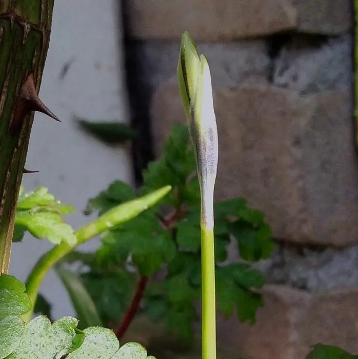 Nach der Blüte sterben die Blätter ab, aber die neuen Blätter erscheinen im August/September.