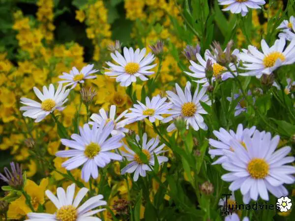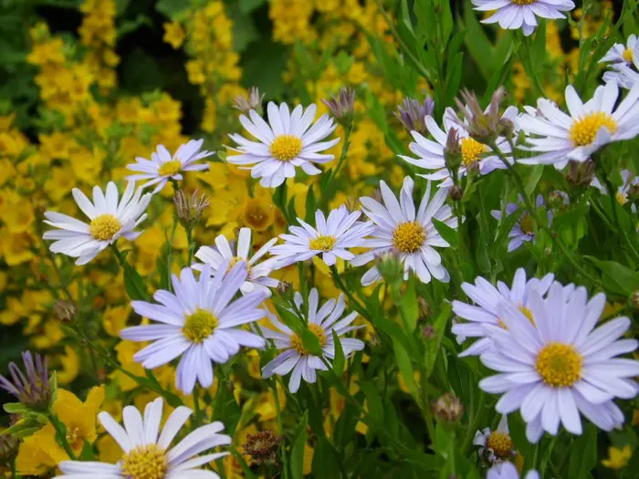 Kalimeris incisa 'Madiva' ist eine kräftige, strauchige Pflanze, deren Blüten Astern ähneln.
