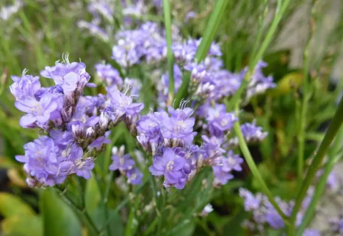 Auf einem langen und stark verzweigten Stängel blühen zahlreiche kleine violett-blaue Blüten. Die Blüten können getrocknet werden und bleiben lange Zeit schön in getrockneten Sträußen.