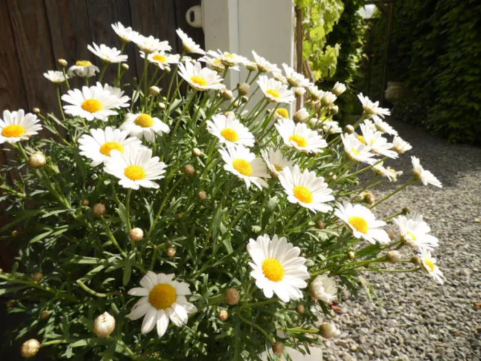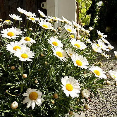 Mauranthemum paludosum ist eine einjährige weiße Zwergchrysantheme mit gelbem Zentrum.