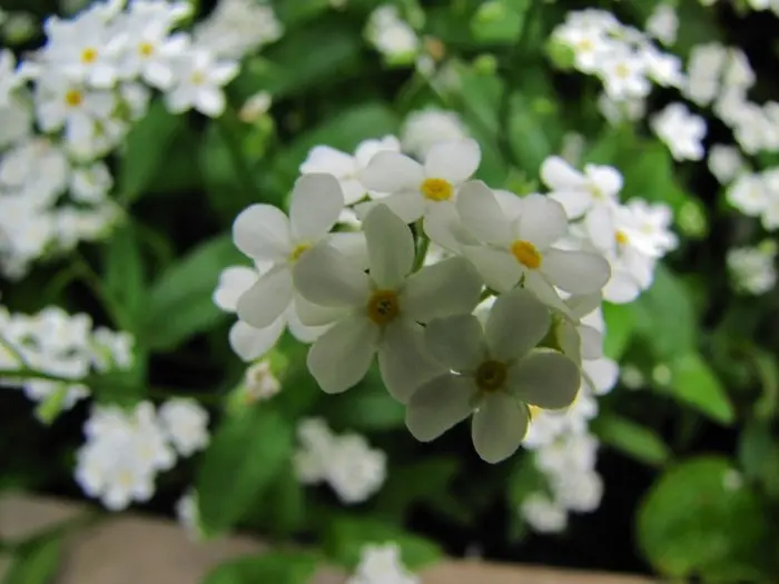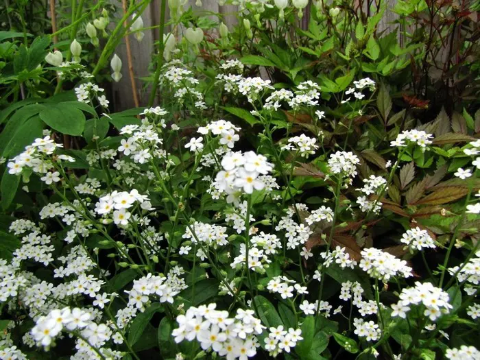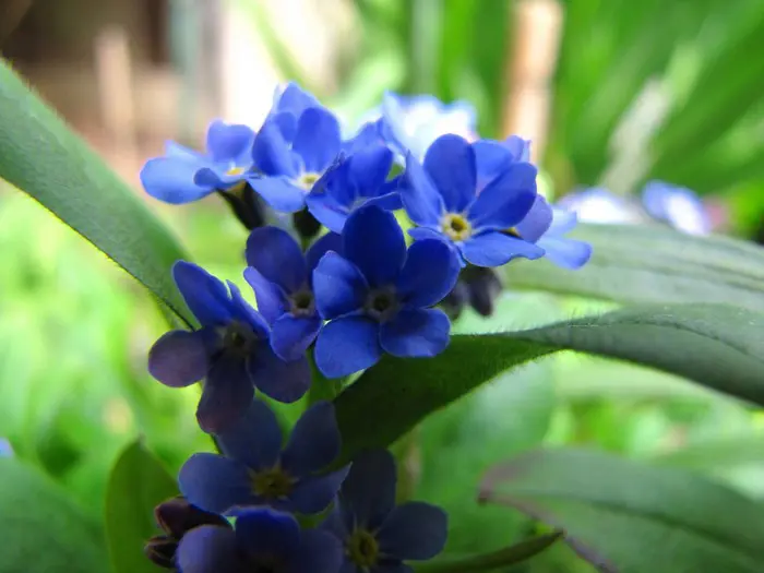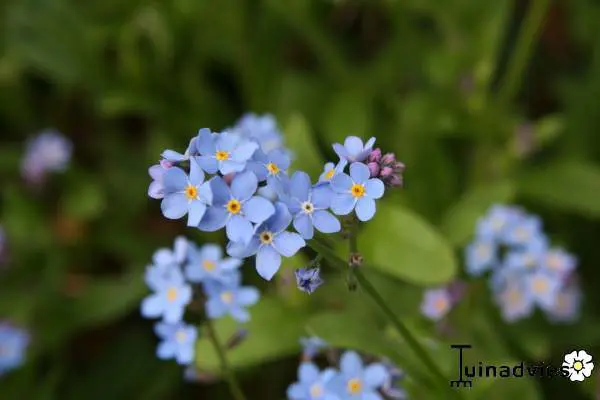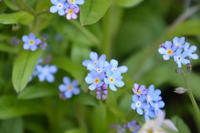 Es ist eine süße, leuchtend blaue Blume mit einem gelben Auge, die sich selbst glücklich aussät.