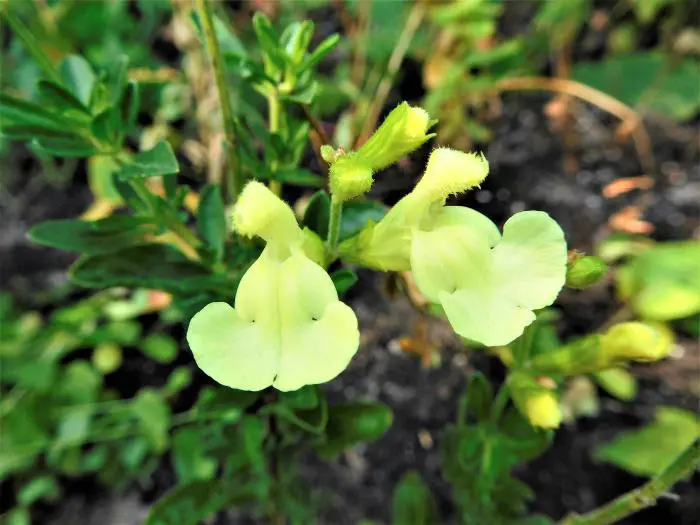 Salvia greggii 'Sungold' ist eine buschige, kompakte Pflanze mit blassgelben Blüten und glänzenden, frischgrünen Blättern.