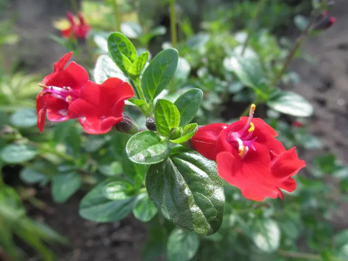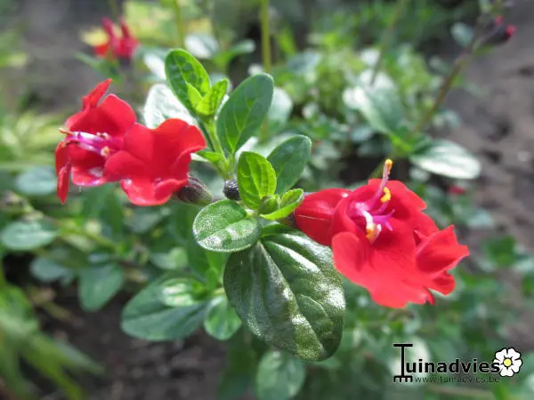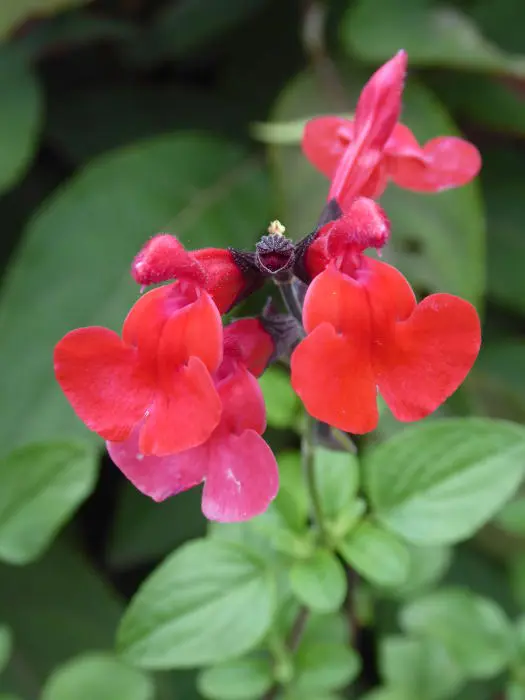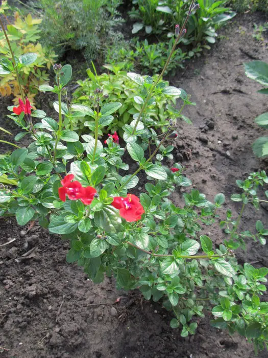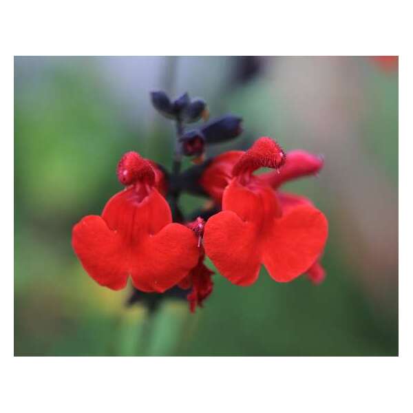 Salvia 'Royal Bumble' ist ein buschiger kompakter Hybrid. Eine gut verzweigte Pflanze mit glänzend grünen Blättern und samtigen, tiefroten Blüten.