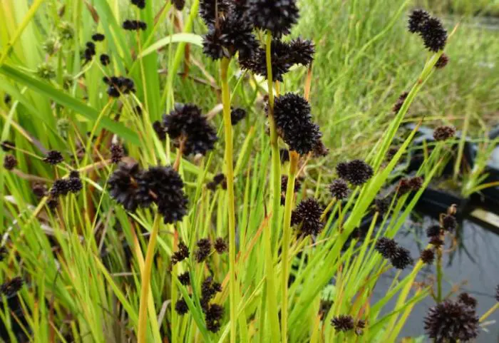 Juncus ensifolius ist eine Sumpf- oder Uferpflanze mit verlängerten und hellgrünen Blättern.