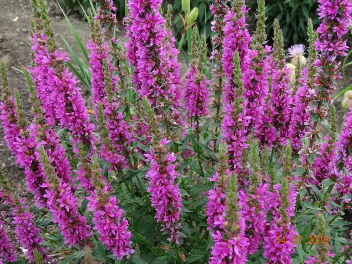 Lythrum salicaria 'Gypsy Gap' ist eine üppig blühende Sorte mit einem hohen, gut gefüllten Blütenstängel.