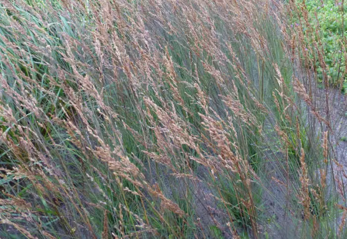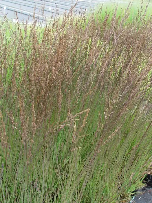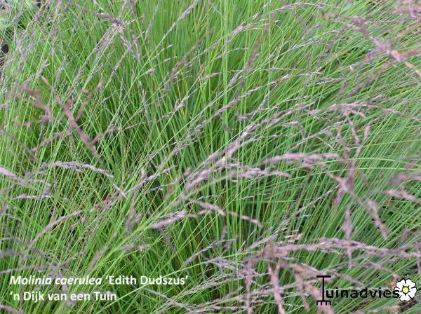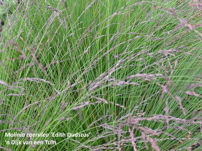 Molinia caerulea 'Edith Dudszus' hat graugrüne Blätter, und die braunen Rispen blühen an den schwarzen Stängeln