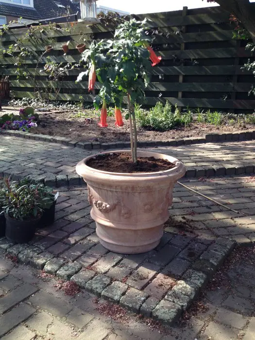 Brugmansia sanguinea ist eine NICHT-duftende Art, die in der Andenregion sowie in Mittel- und Südamerika heimisch ist und zur Sektion sphaerocarpium (kaltes Brugmansia) gehört.