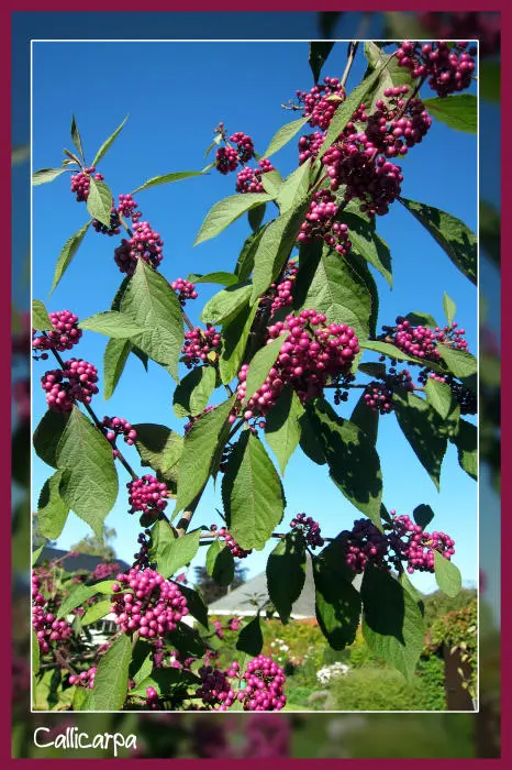 Callicarpa wächst in den Wäldern Zentral- und Westchinas, ist aber vor allem für ihre schönen violetten Beeren bekannt, die ab September reichlich auf dem Strauch zu sehen sind. Da die Vögel diese Beeren nicht besonders mögen, bleiben sie ziemlich lange auf dem Busch und manchmal sieht man die Zweige in Weihnachtsarrangements erscheinen. Die Beeren sind weiß oder hell bis dunkelviolett.