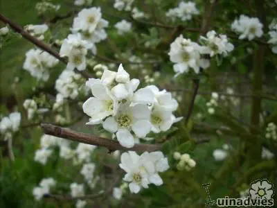 Exochorda ist ein aufrechter Strauch mit weißeren als weißen Blüten, einzeln oder doppelt.
