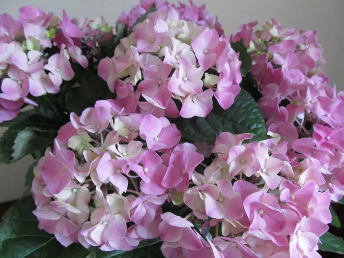 Je nach pH-Wert im Boden sind die Blüten rosa (kalkend) oder blau (sauer), aber bei Behandlung mit Alaun werden sie ebenfalls blau.