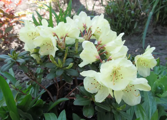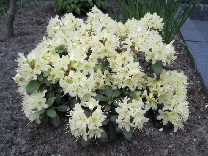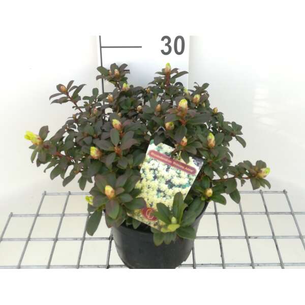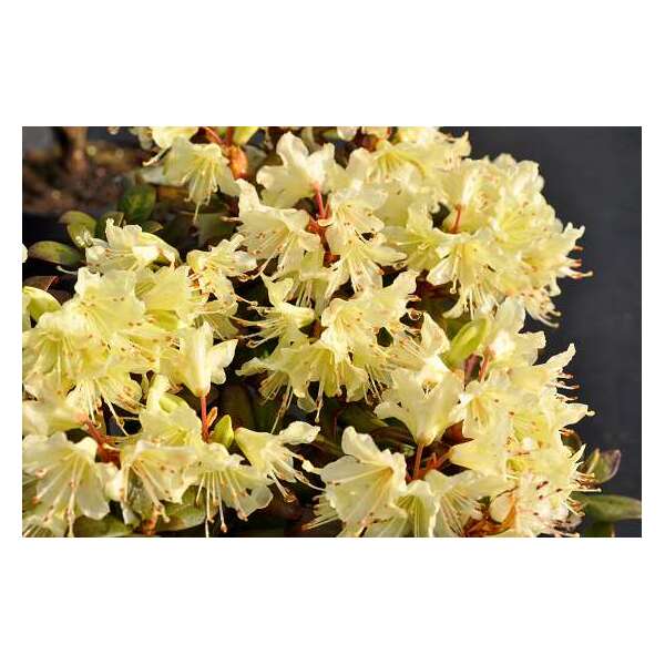 Ein Zwergstrauch, der niedriger als 30/40 cm hoch bleibt und weiche gelbe Blütenbüschel hat.