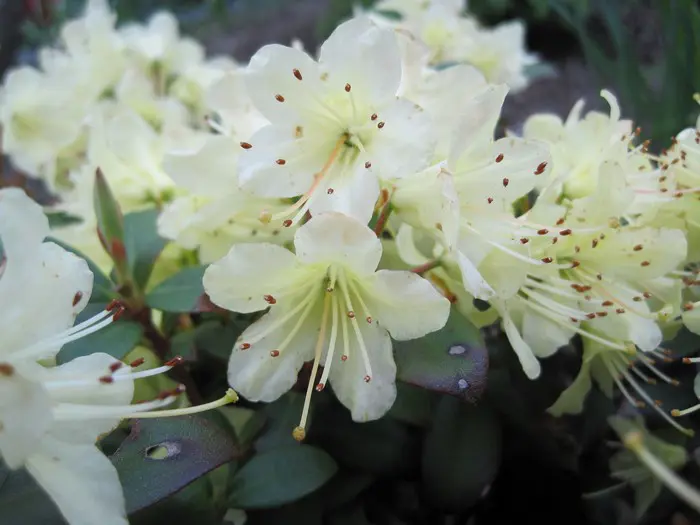 Die glänzend grünen Blätter nehmen im Winter und Frühling eine bronzegrüne Farbe an.