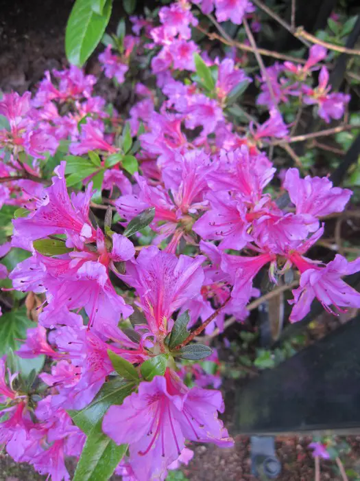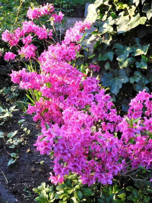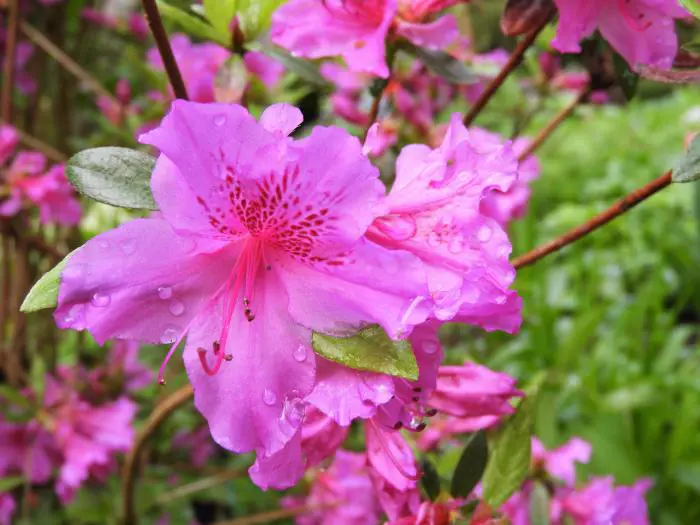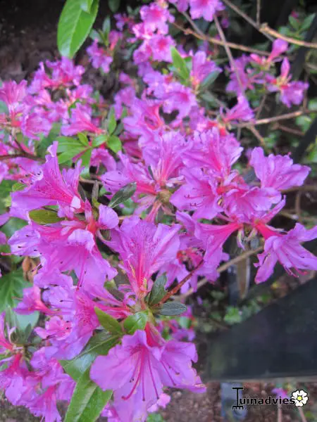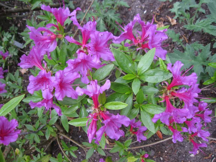 Niedrig wachsender Strauch mit fliederfarbenen Blüten.