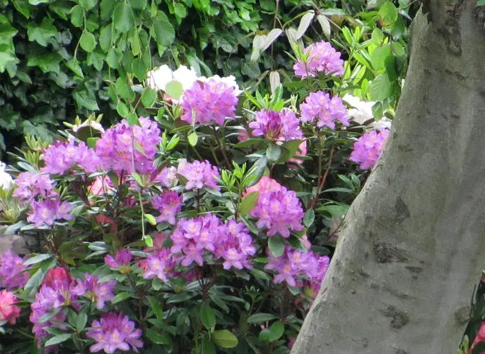 Rhododendron ponticum 'Roseum' ist ein kräftiges flieder-rosa Rhododendron.
