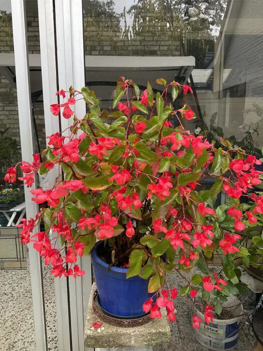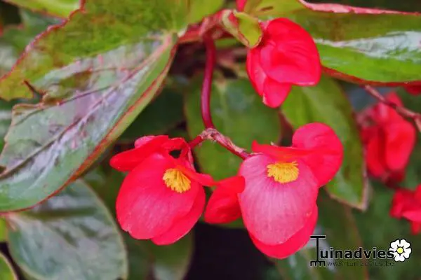 Begonia 'Dragon Wing Red' ist eine aufrechte, einjährige Begonie mit glänzenden, leuchtend grünen Blättern.