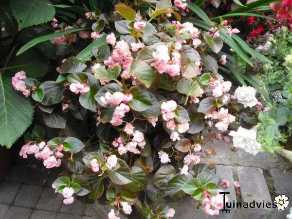 Begonia semperflorens ist eine blühende Einjährige mit glänzenden, runden, saftigen Blättern und überwiegend rosa Blüten. Sie kommen auch mit weißen oder roten Blüten vor.