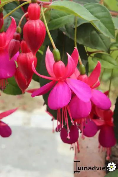 Eine aufrechter Fuchsia mit einzelnen Blüten.