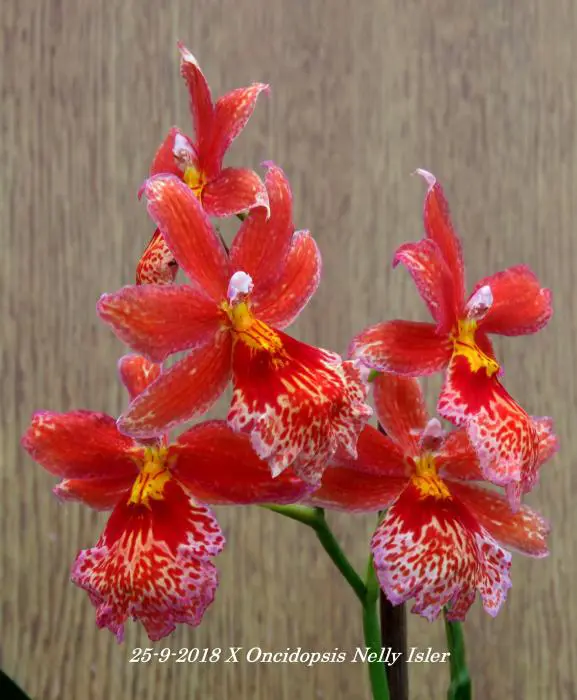 Die Cambria ist ein Sammelbegriff für eine Gruppe von gekreuzten Orchideen, darunter diese epiphytische Orchidee x Oncidopsis Nelly Isler.