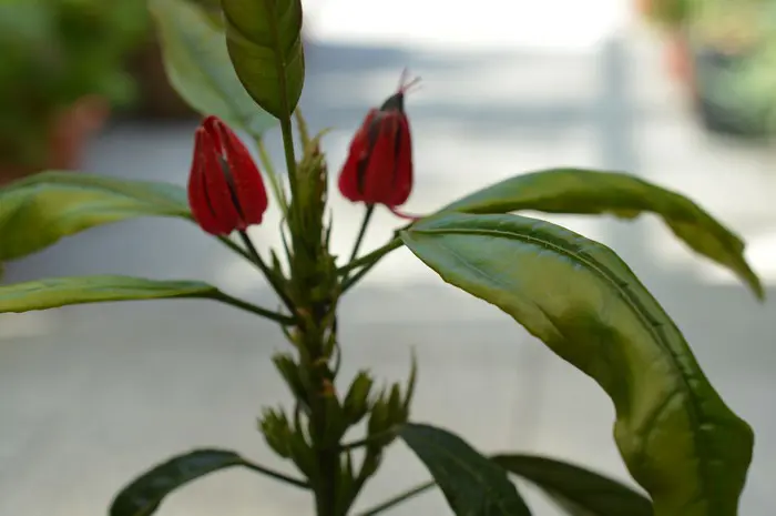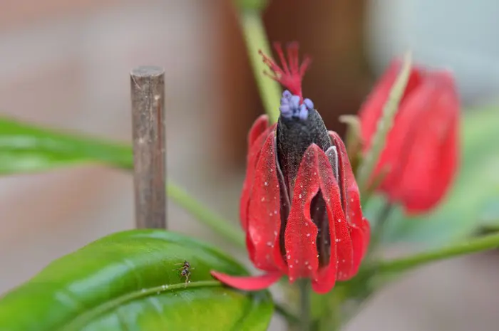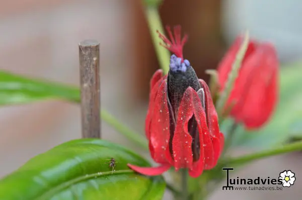 Pavonia multiflora stammt aus Brasilien und blüht das ganze Jahr über mit violett-roten Blüten.