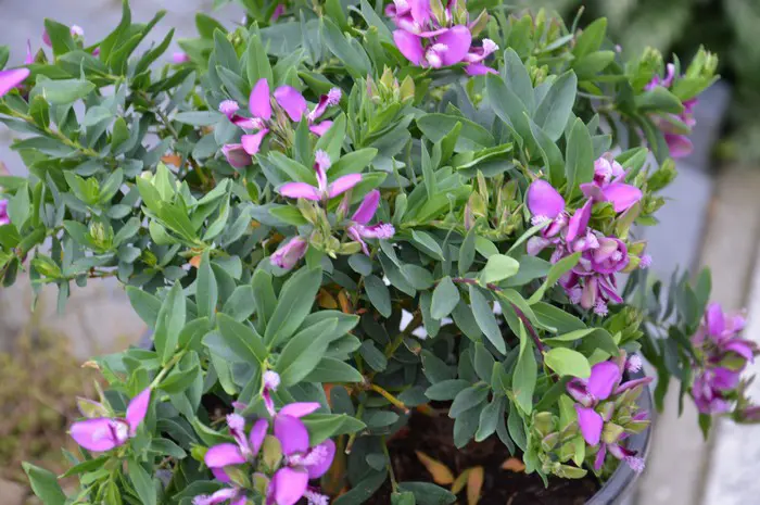 Wenn die Polygala ihre Blätter verliert, ist sie meist zu trocken, selbst im Winter muss sie regelmäßig gegossen werden.