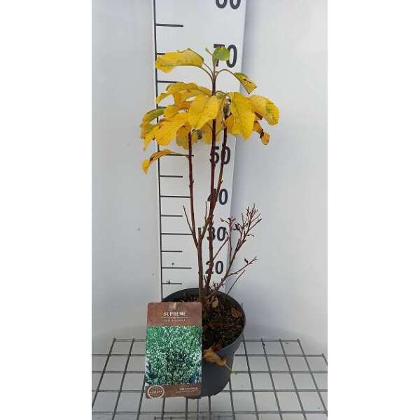Blüht sehr üppig mit großen Büscheln weißer, sternförmiger Blüten, gefolgt von essbaren dunkelvioletten Früchten im Juli. Kann zur Herstellung von Marmelade verwendet werden.