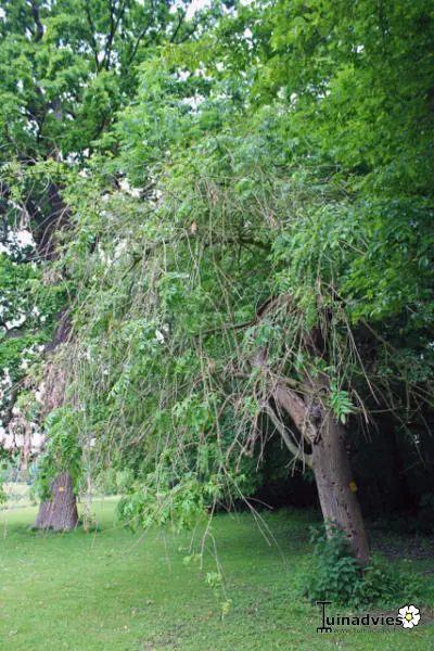Fraxinus excelsior 'Pendula' ist eine Eske mit hängenden Ästen und wird daher oft als Laubenbaum verwendet.
