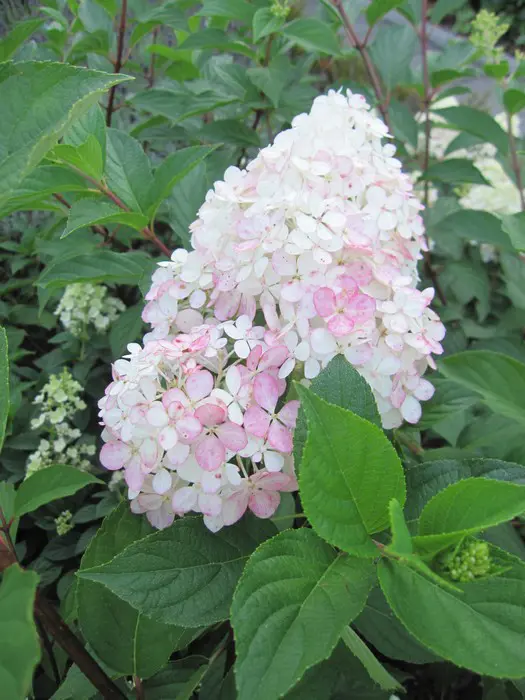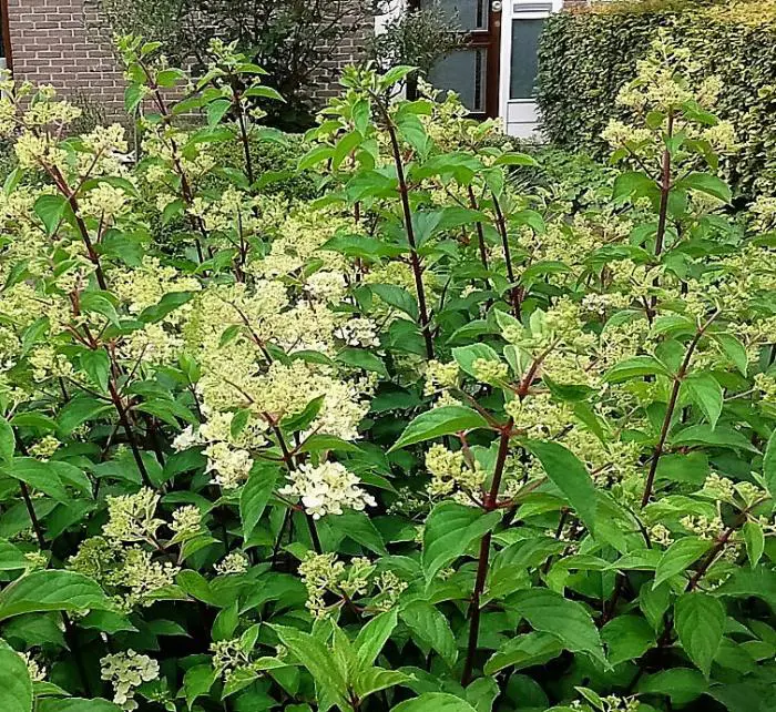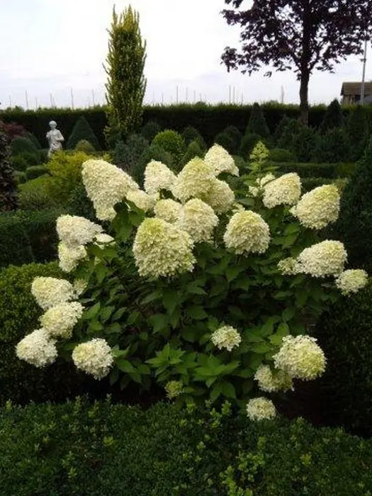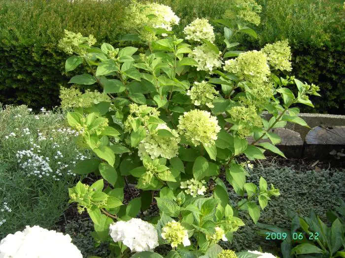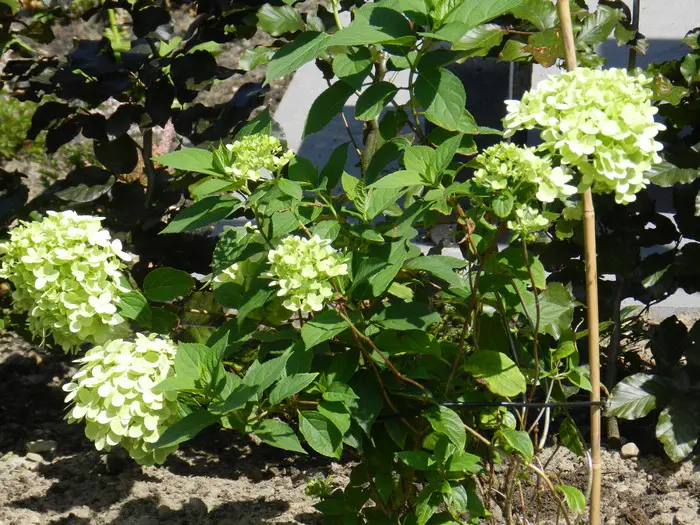 Die Blüten der Hydrangea paniculata 'Limelight' werden in armem Boden weißer, daher ist es für schöne grünliche Blüten besser, in feuchtem und fruchtbarem Boden zu pflanzen.