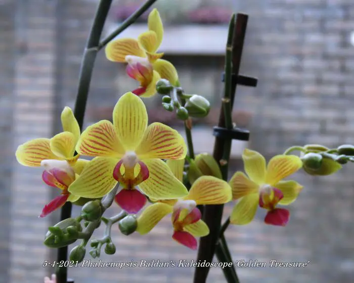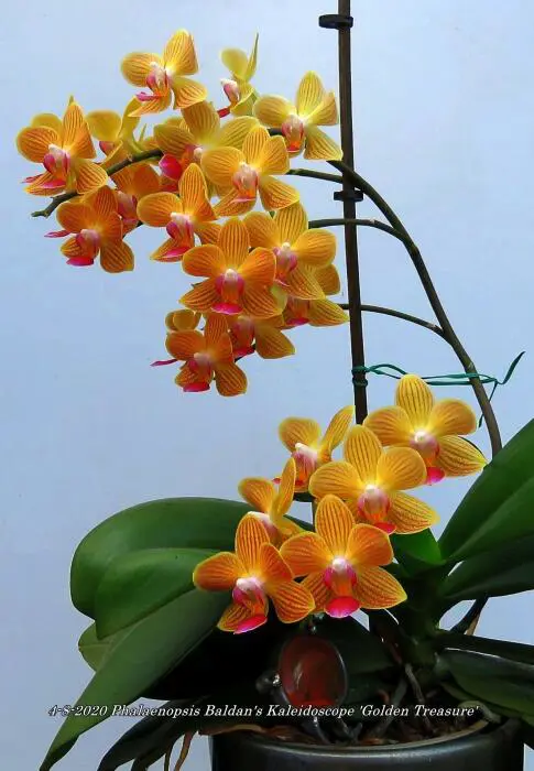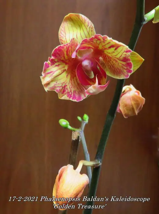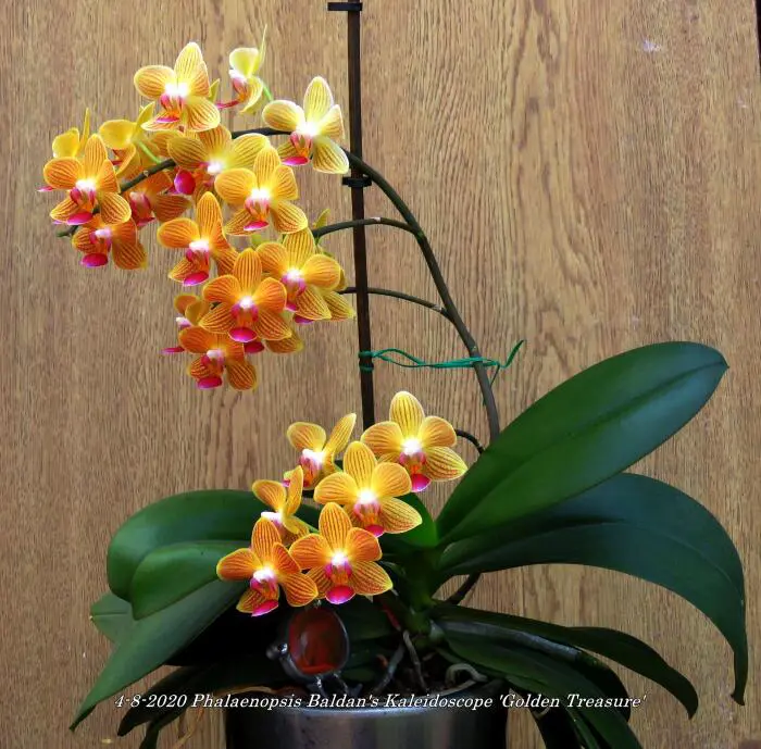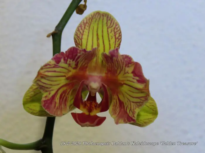 Phalaenopsis Baldans Kaleidoskop 'Goldener Schatz' ist einer der besseren orange/gelb gestreiften Phalaenopsis.