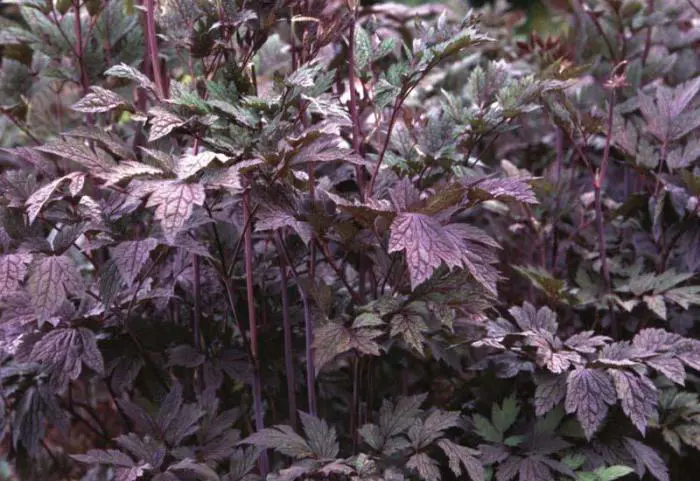 Actaea simplex 'Atropurpurea' ist eine wunderschöne, buschige Pflanze mit wunderschön geschnittenen, bräunlich-violetten (fast schwarzen) Blättern.