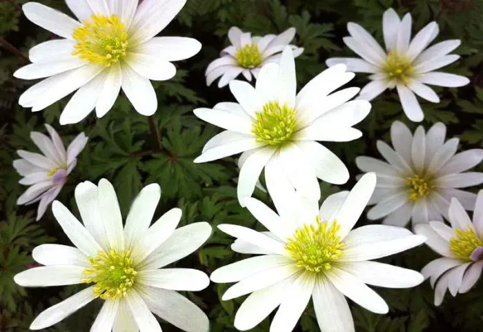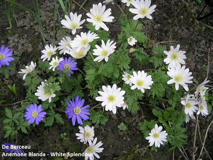 Anemone blanda 'White Splendour' blüht mit reinweißen, sternförmigen Blüten mit gelbem Zentrum, die im frühen Frühling blühen und sich leicht naturalisieren.