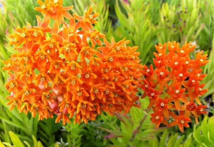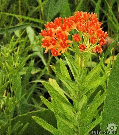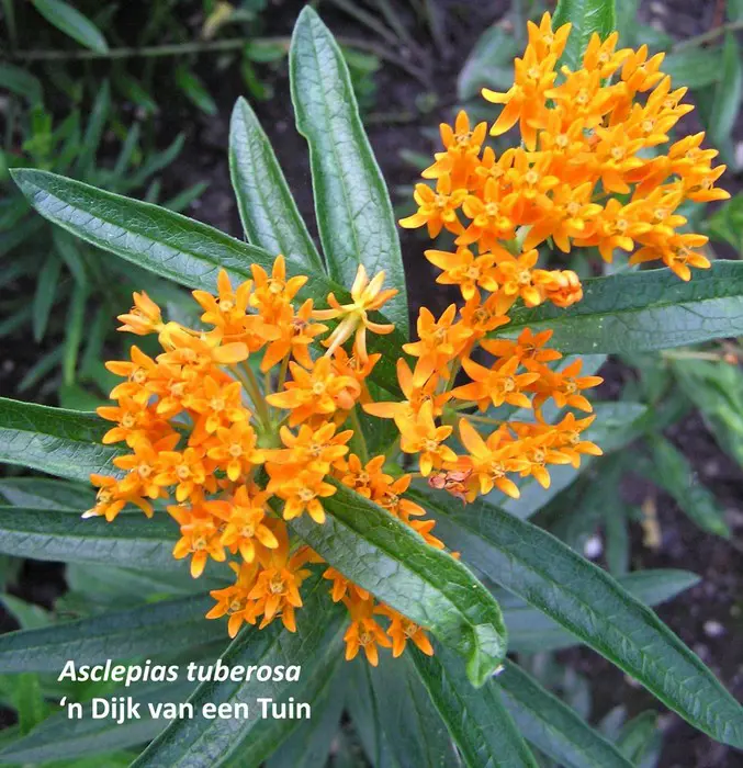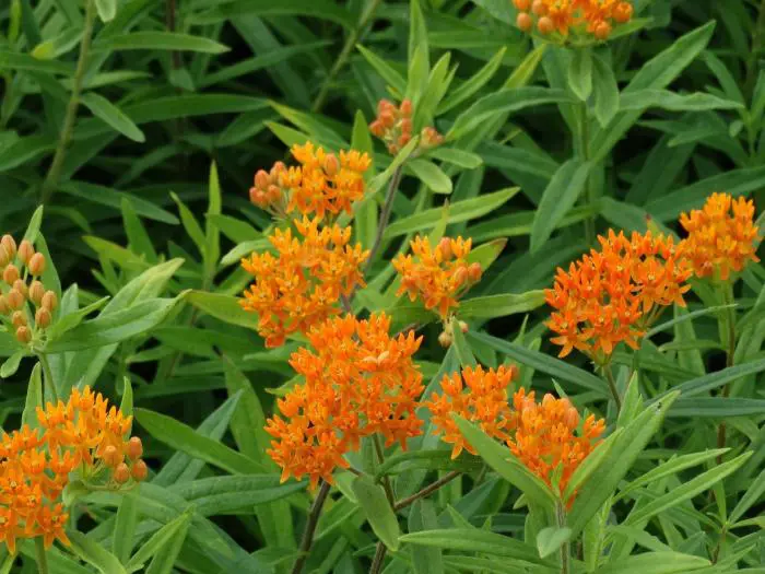 Asclepias tuberosa ist eine hohe, aufrechte Pflanze mit verlängerten grünen Blättern. Die Pflanze sprießt ziemlich spät.