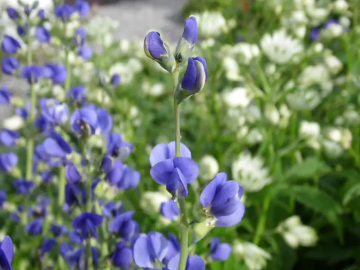 Hat einen lupinenähnlichen Blütenstand, ist aber viel robuster und bleibt auch nach der Blüte schön und krankheitsfrei, während Lupinen einfach empfindlich auf Blattläuse reagieren.