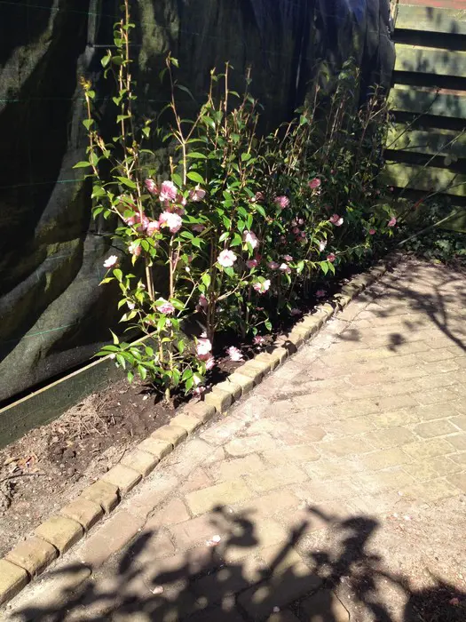 Es handelt sich um einen aufrecht wachsenden Strauch mit eiförmigen, glänzend grünen, lederartigen Blättern und kleineren, doppelten Blüten in leuchtend rosa Farbe.